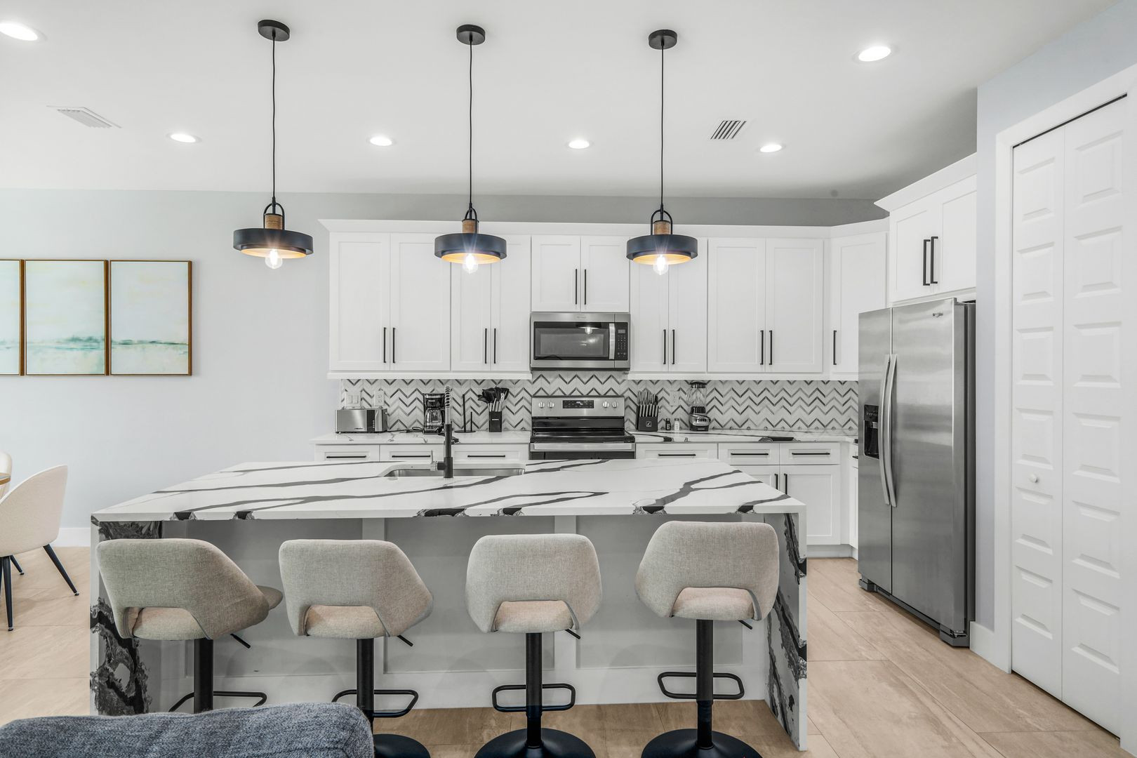 This brand-new, exquisitely designed vacation home is a sanctuary for creating lasting memories. Step inside 1,644 square feet of modern elegance, where high-end furnishings and thoughtful design create an inviting and spacious atmosphere.